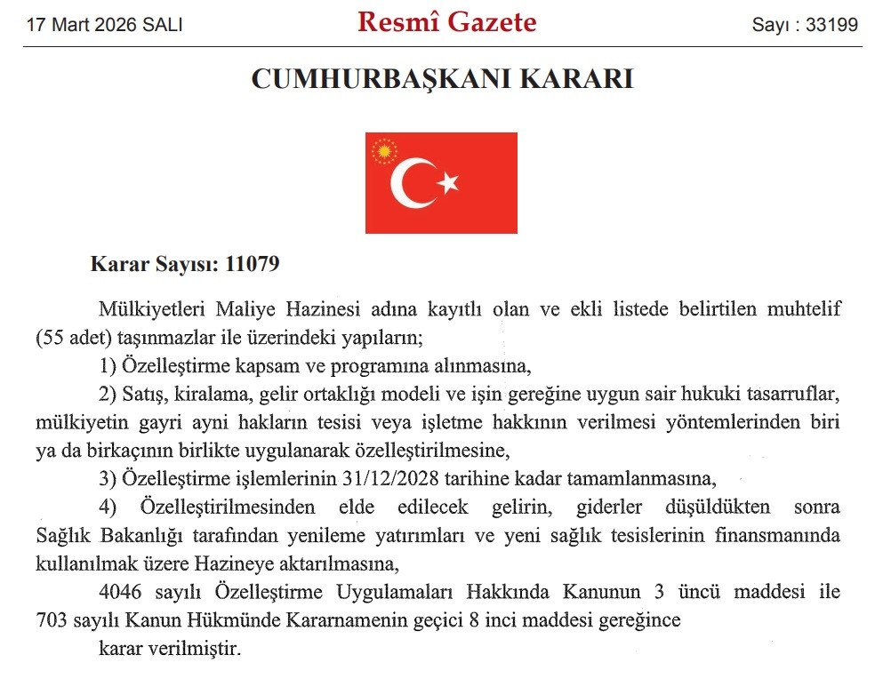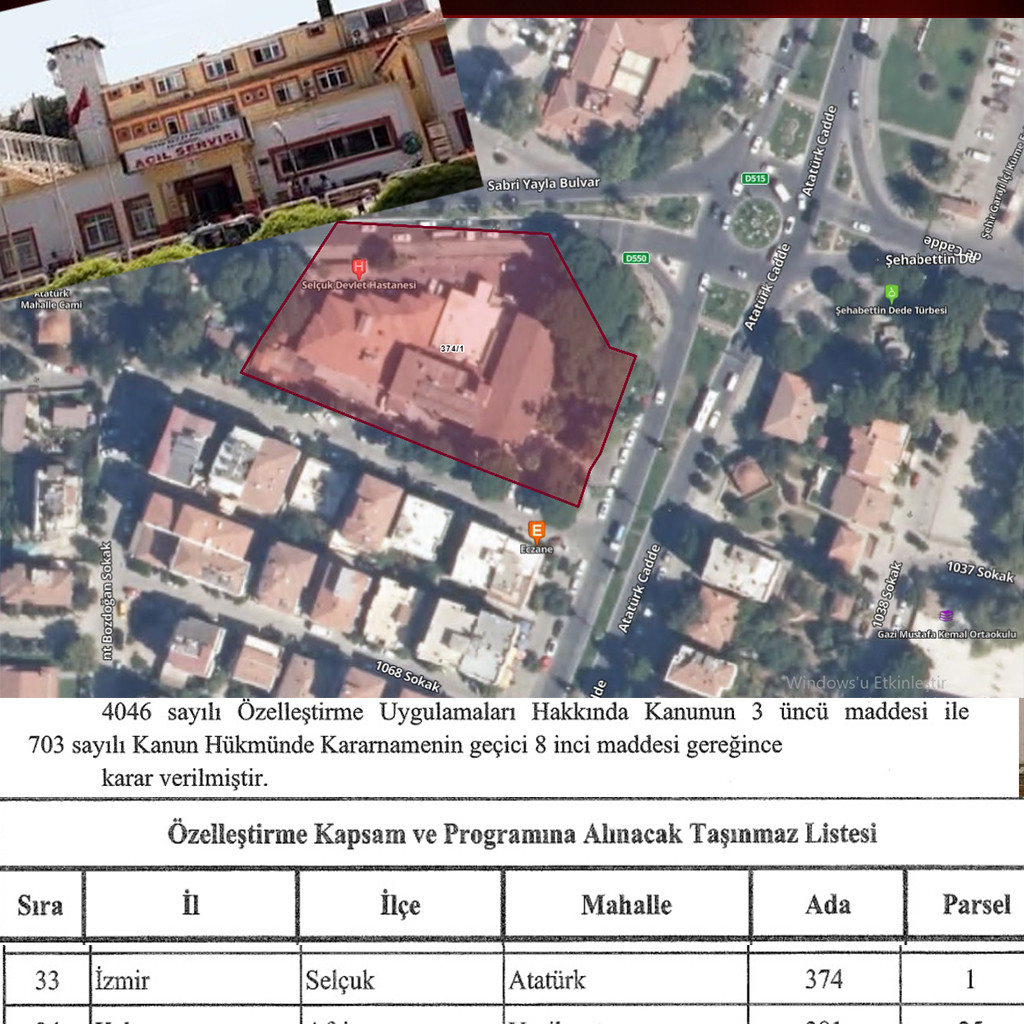 17 Nisan 2026 tarihli Resmî Gazete’de yayımlanan Cumhurbaşkanı kararıyla, Selçuk’taki mevcut devlet hastanesi özelleştirme kapsamına alınmıştı.