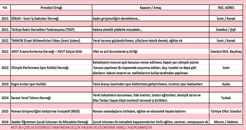 Selçuk Belediye Meclisinin 2025 Aralık oturumunda alınan bir karar doğrultusunda Filiz Başkan ha bugün ha yarın Mersin'in Akdeniz ilçesinde faaliyet gösteren bir dernekle protokol imzalayacak. Derneği araştırdım, çok başarılı da bir başkanı var.